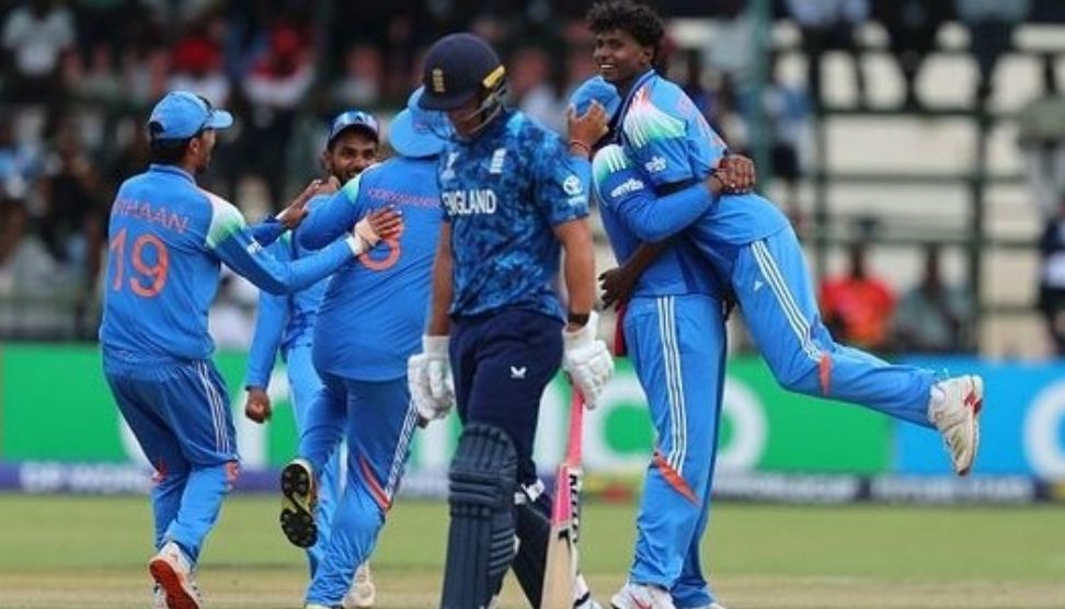 শুক্রবার জিম্বাবোয়ের বুলাওয়েতে অনূর্ধ্ব -১৯ বিশ্বকাপ ক্রিকেটের ফাইনাল ম্যাচে বৈভব সূর্যবংশীর “ঘাতক” ব্যাটিংয়ে ইংরেজদের ১০০ রানে পরাজিত করে ভারত। এদিন টসে জয়ী হয়ে প্রথম ব্যাট করার সিদ্ধান্ত নেয় আয়ুষ মাহত্রের ভারত। ভৈবব সূর্যবংশী ও জর্জ অ্যারন ভারতের ইনিংস শুরু করে। কিন্তু সেমি ফাইনালের সেঞ্চুরি করা অ্যারনের উইকেট হারিয়ে চাপে পড়ে যায় ভারত। ক্রিজে নামে অধিনায়ক আয়ুষ মাহত্র। চাপ কাটিয়ে ভারতের যুব রান মেশিন ভৈবব ঝড় তুলে বাইশ গজে। তাকে যোগ্য সঙ্গ দেয় আয়ুষ।বৈভব সূর্যবংশী ৮০ বলে ১৭৫ রান করে।ম্যাচে ৫৫ বলে শতরান করেন বিহারের ১৪ বছর বয়সী বৈভব। তার ইনিংস সাজানো ছিলো ১৫টি বাউন্ডারি ও ১৫টি ওভার বাউন্ডারি দিয়ে। অধিনায়ক আয়ুষ করে ৫৩। বৈভব সুনামিতে হাড়-গুড় ভেঙে যায় ব্রিটিশ বোলিং লাইন আপ। শেষ পর্যন্ত ভারত ৫০ ওভারে ৪১১ রানের দানবীয় স্কোর করে।