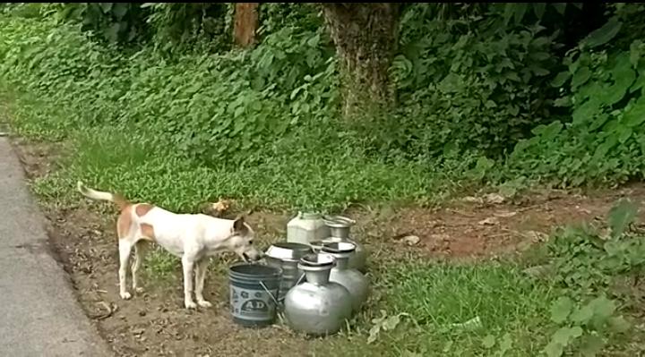 ফলে দেখা গেল,কাঠ ফাঁঠা রৌদ্রে পাহাড়ের নির্জনতার সুযোগ নিয়ে একটি কুকুর সেই জলের পাত্রগুলো থেকে নিজের জলের তেষ্টা নিবারণ করছে।