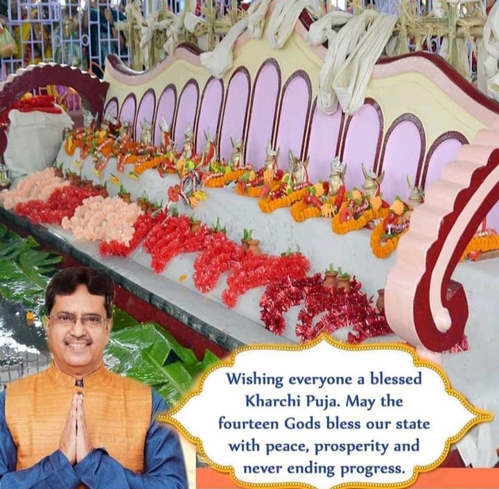 খারচি পুজো উপলক্ষ্যে রাজ্যের মুখ্যমন্ত্রী ডা:মানিক সাহা রাজ্যবাসীকে শুভেচ্ছা জানিয়েছেন।তিনি সামাজিক যোগাযোগ মাধ্যমে লিখেছেন,”সবাইকে খারচি পূজার শুভেচ্ছা জানাই। চতুর্দশ দেবতাদের কাছে প্রার্থনা করি যাতে রাজ্যবাসীকে শান্তি, সমৃদ্ধি এবং অন্তহীন অগ্রগতির আশীর্বাদ করেন।”