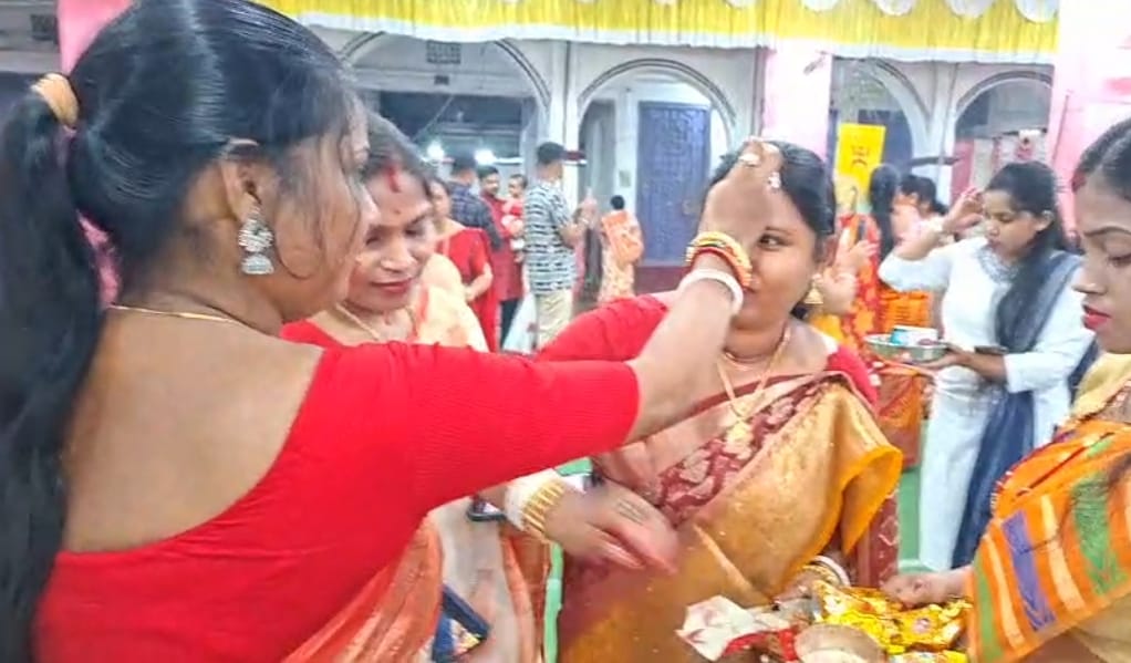 বিজয়ার বিষাদ সুরে দেবীকে বিদায় ধর্মনগরে।শারদীয় দুর্গোৎসবের সমাপ্তি লগ্নে প্রতি বছরের মতোই আজ দশমীর দিনে অনুষ্ঠিত হলো সিঁদুর খেলা ও মহিলাদের মিলন উৎসব। সকাল থেকে মুষলধর বৃষ্টির জন্য মহিলারা ঘর থেকে বেরোতে পারেননি। এরপরও মহিলাদের মধ্যে উৎসাহের খামতি ছিল না বিন্দুমাত্র। পরে বৃষ্টিকে উপেক্ষা করে মণ্ডপে মন্ডপে ভিড় জমতে থাকে মহিলাদের। পূজার্চনা শেষে দেবীর মুখে সিঁদুর পরিয়ে একে অপরের সাথে সিঁদুর খেলায় মেতে ওঠেন তাঁরা। আনন্দ-উৎসবের এই মুহূর্তে লাল রঙে রঙিন হয়ে ওঠে চারিদিক।হাসি-আনন্দ আর আবেগে ভরপুর এই সিঁদুর খেলাকে ঘিরে মণ্ডপে ছিল ভিন্ন আবহ। দেবীর বিসর্জনের আগে মহিলাদের অংশগ্রহণে এই আচার হয়ে ওঠে চিরাচরিত ও মিলনমেলায়। ধর্মনগরের বিভিন্ন পূজা মণ্ডপে হাজার হাজার দর্শনার্থী প্রত্যক্ষ করেন এই বিষাদের দৃশ্য।স্থানীয়রা জানিয়েছেন, সিঁদুর খেলা শুধু আনন্দ নয়, এটি বাঙালি হিন্দু নারীদের কাছে একতা, ভালোবাসা ও আগামী দিনের শুভ কামনারও প্রতীক। এতে বাঙালি জাতি সমস্ত বছর অপেক্ষা করে মা দুর্গার আগমনের আগ পর্যন্ত। যা বাঙালির শ্রেষ্ঠ উৎসব হিসেবে পরিচিত।