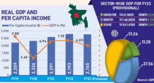 ২০০৮ সালে আমাদের মাথাপিছু আয় ছিল ৫৬৪ ডলার আর বর্তমানে ২৬২৪ ডলার যা ভারত, পাকিস্তান, নেপাল থেকে বেশি। যেখানে ২০০৮ সালে জিডিপি ছিল ১১০ বিলিয়ন ডলার আর ২০২৪ শে জুনে হয়েছে ৫০০ বিলিয়নের বেশি।