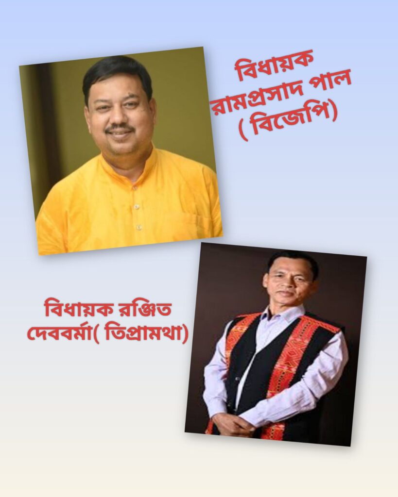 শাসক জোটের দুই বিধায়ক রাম প্রসাদ পাল ও বিধায়ক রঞ্জিত দেববর্মাকে গ্রেফতারের দাবীতে মাঠে নামলো ঊনকোটি জেলার সাংবাদিকরা। রীতিমতো প্রকাশ্য রাজপথে দুই বিধায়ককে গ্রেফতাতের জন্য স্লোগান দেয় সাংবাদিকরা। বৃহস্পতিবার দুপুরে ঊনকোটি জেলা মিডিয়া ফোরামের পক্ষ থেকে রাজ্যের পুলিশ মহানির্দেশকের উদ্দেশ্যে জেলার পুলিশ সুপারের কাছে ডেপুটেশন প্রদান করেন সাংবাদিকরা। ডেপুটেশন প্রদানের পূর্বে ঊনকোটি জেলার কৈলাসহর এবং কুমারঘাটের সাংবাদিকরা জেলা পুলিশ সুপার অফিসের সামনে একত্রিত হয়ে ঊনকোটি জেলা মিডিয়া ফোরামের পক্ষ থেকে প্রকাশ্য রাজপথে স্লোগান দিয়ে বিক্ষোভ প্রদর্শন করে। অভিযুক্ত দুই বিধায়ককে গ্রেফতার করার দাবীতে ফ্ল্যাক্স নিয়ে মিছিল করে জেলা পুলিশ সুপারের অফিসের ভিতরে প্রবেশ করে। ঊনকোটি জেলার পুলিশ সুপার সুধামবিকা আরের হাতে ডেপুটেশন পত্র তোলে দেয় সাংবাদিকরা। ডেপুটেশনে উপস্থিত ছিলেন ঊনকোটি জেলা মিডিয়া ফোরামের নেতৃত্ব তথা সাংবাদিক মহাম্মদ জামাল উদ্দিন, দেবাশীষ দত্ত, অয়ন মজুমদার, প্রিয়তোষ দাস, আজির মিয়া, আব্দুল সোফান, বিকাশ কাপালি, অর্জুন মালাকার, সুজতা সাহা, লীলাবতী সিনহা, নজমুল হোসেন, হোসেন আহমেদ, নাহিম উদ্দিন, উত্তম সিনহা, আশুতোষ দাস, দিগবিজয় মালাকার, আশুতোষ পাল, নাহিম উদ্দিন, আব্দুল শামিম, আব্দুল রহিম, জাকির হোসেন সহ আরও অনেকে।