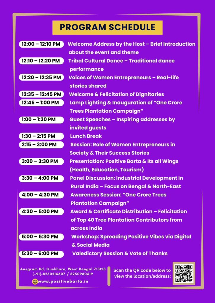 অত্যন্ত আনন্দের সঙ্গে এবং সম্মিলিত সাফল্যের চেতনায় পজিটিভ বার্তার উদ্যোগে এক ন্যাশনাল অ্যাওয়ারনেস কনক্লেভ আয়োজিত হতে চলেছে। এই অনুষ্ঠান পরিবেশ রক্ষায়, মাত্র এক বছরে এক কোটি গাছ রোপণ কর্মসূচীর সফলতার এক ঐতিহাসিক উদযাপন।