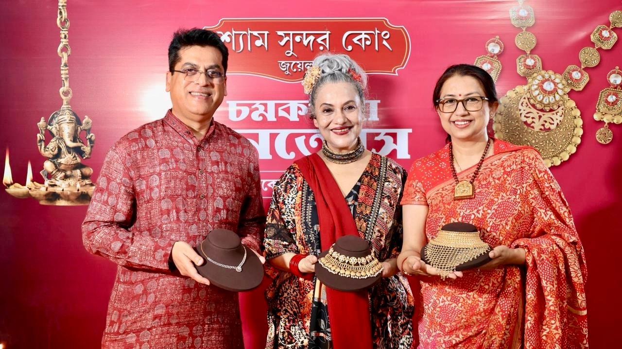 এবছরের ‘চমক ভরা ধনতেরসের’ বিশেষ কালেকশন গুলো উদ্বোধন করেন বিশিষ্ট লাইফ কোচ ও নৃত্যগুরু অলকানন্দা রায়, পাশে ছিলেন অর্পিতা সাহা ও রূপক সাহা, শ্যাম সুন্দর কোং জুয়েলার্স-এর দুই ডিরেক্টর।