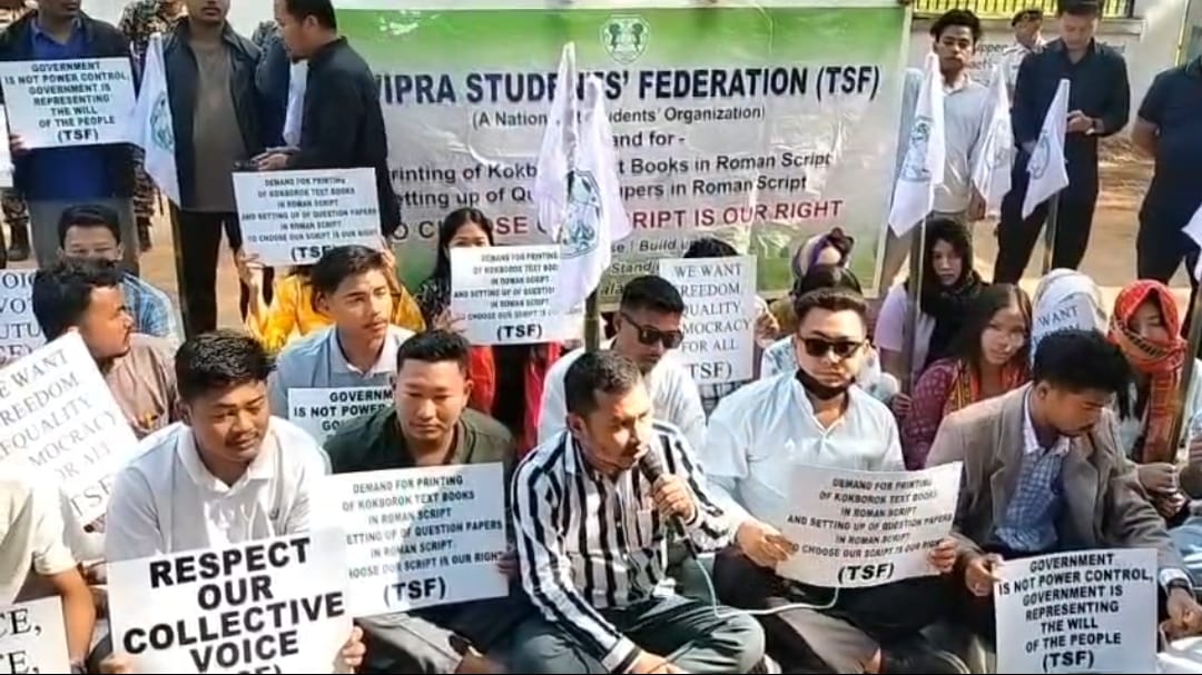 দরজায় কড়া নাড়ছে পাহাড়ের এডিসি নির্বাচন। আসন্ন নির্বাচনে ঘুর পথে বাজার ধরতে প্রয়োজন রোমান হরফের ইস্যুকে ফের কবর থেকে তুলে আনা। ত্রিপুরা স্টুডেন্ট ফেডারেশন অর্থাৎ টিএসএফকে দিয়ে এটাই করাতে চাইছে তিপ্রামথা। রোমান হরফে ককবরক লিপি চালু করার দাবিতে মঙ্গল বার ফের আন্দোলনে বসেছে টিএসএফ। শহরের সার্কিট হাউসে তারা আন্দোলন শুরু করে। টি এস এফ নেতৃত্বের দাবী, রাজ্য সরকার এই বিষয়ে এখনো সহানুভূতিশীল নয়। রাজ্যের মুখ্যমন্ত্রী ও রাজ্য সরকারের এই বিষয়ে মাইন্ড সেটআপ পিউরিফাই করা দরকার।আন্দোলনরত টিএসএফ নেতারা এই বিষয়ে বারবার আক্রমণ করছে রাজ্য সরকার ও সরকারের অভিভাবক মুখ্যমন্ত্রী ডাঃ মানিক সাহাকে।রাজনীতিকরা বলছেন, পুরো ঘটনা স্ক্রিপটেড। পাহাড়ের ভোটের বাজার ধরতেই তিপ্রামথার এই কৌশল।