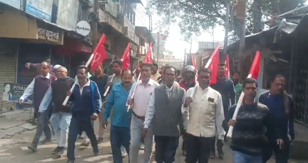 এদিন সকালে সিপিআইএম নেতৃত্ব একটি বিশাল মিছিল নিয়ে শহরের প্রধান সড়ক প্রদক্ষিণ করে । তবে মিছিল চলাকালীন পুলিশ বাধা দেয় এবং দুই দফায় প্রায় শতাধি আন্দোলনকারীদের গ্রেপ্তার করে। আটক কর্মীদের সাময়িকভাবে কৈলাসহর পুরাতন টাউন হলে রাখা হয়েছিল।