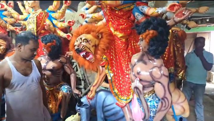 ।।দূর্গা প্রতিমায় ইট – পাটকেল।।