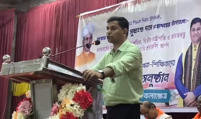“ভারতরত্ন সর্বপল্লী রাধাকৃষ্ণণের ব্যক্তিত্ব সর্বদাই আমাদের অনুপ্রেরণা যোগায় । “- বক্তা রাজ্যের মৎস্য ও প্রাণী সম্পদ বিকাশ দাপ্তরের মন্ত্রী সুধাংশু দাস।রবিবার ফটিকরায় নজরুল কলা ক্ষেত্রে ৬৪তম শিক্ষক দিবস উদযাপন উপলক্ষে আয়োজিত অনুষ্ঠানে তিনি একথা বললে।
