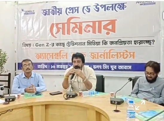 অব জার্নালিস্টস-র উদ্যোগে এক বিশেষ সেমিনারের আয়োজন করা হয় ভগৎ সিং যুব আবাসে। আধুনিক মিডিয়া ইকোসিস্টেম ও নবপ্রজন্মের সংবাদ গ্রহণের ধরণকে কেন্দ্র করে আয়োজিত এই সেমিনারের মূল বিষয়ের ছিল— “Gen Z’র কাছে ট্রেডিশনাল মিডিয়া কি জনপ্রিয়তা হারাচ্ছে?”