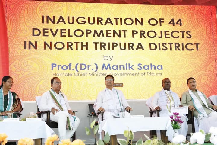 উত্তর জেলায় বিভিন্ন উন্নয়ন মূলক কাজের একাধিক প্রকল্পের শিলান্যাস ও উদ্বোধন করতে বুধবার বিকেলে ধর্মনগর আসলেন রাজ্যের মুখ্যমন্ত্রী ডঃ মানিক সাহা। বহিরাগত এক্সপ্রেস ট্রেনে করে ধর্মনগর স্টেশনে নেমে বাগবাসা বিধানসভা কেন্দ্রের লালছড়া এলাকায় নবনির্মিত ডিস্ট্রিক্ট পঞ্চায়েত রিসোর্স সেন্টারের উদ্বোধনী মঞ্চে চলে যান। সেখানে প্রথমে নতুন ভবনের উদ্বোধন করে চলে যান মূল মঞ্চে। মঞ্চে মুখ্যমন্ত্রীকে উষ্ণ সংবর্ধনা প্রদান করা হয় বিভিন্ন দপ্তরের পক্ষ থেকে। মঞ্চে মুখ্যমন্ত্রী ছাড়াও উপস্থিত ছিলেন রাজ্য বিধানসভার অধ্যক্ষ তথা ধর্মনগরের বিধায়ক বিশ্ববন্ধু সেন, ত্রিপুরা সরকারের যুব বিষয়ক ক্রীড়া দপ্তর ও সমাজ কল্যাণ ও সমাজ শিক্ষা দপ্তরের মন্ত্রী টিংকু রায়, এলাকার বিধায়ক যাদব লাল নাথ সহ জেলাশাসক চন্দ্রানী চন্দ্র, পুলিশ সুপার অবিনাশ রাই, সভাধিপতি অপর্ণা নাথ সহ আরো অন্যান্য সরকারী আধিকারিকরা উপস্থিত ছিলেন। প্রথমেই মুখ্যমন্ত্রী রাজ্যের ষাটটি ব্লকের মধ্যে কদমতলা ও কালাছড়া ব্লক প্রধানমন্ত্রী আবাস যোজনা বন্টনে প্রথম ও দ্বিতীয় হওয়াতে দুই ব্লকের আধিকারিকদ্বয়কে সংবর্ধনা প্রদান করেন। এছাড়াও বিভিন্ন গ্রাম পঞ্চায়েতের জনপ্রতিনিধিদের বিভিন্ন ক্ষেত্রে পুরস্কৃত করা হয়। এর পর মুখ্যমন্ত্রী উনার পঁয়তাল্লিশ মিনিটের বক্তব্যে রাজ্যের সার্বিক উন্নয়ন নিয়ে দীর্ঘ আলোচনা করেন।