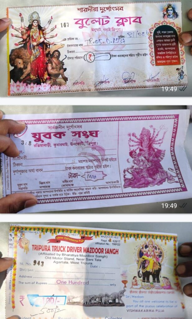 চাঁদা নিয়ে রাজ্যে বাড়ন্ত নতুন কোন বিষয় নয়। ফলে এবছরও একই অবস্থা। কিন্তু ইতিমধ্যেই রাজ্যের মুখ্যমন্ত্রী ডঃ মানিক সাহা আসন্ন দূর্গা পূজো উপলক্ষে চাঁদার জুলুমবাজি রুখতে কঠোর পদক্ষেপের  নির্দেশ দিলেও, তা মান্যতা দিচ্ছে না একাংশ ক্লাব কর্তারা। ঊনকোটি জেলার কুমারঘাট মহকুমায় বিভিন্ন ক্লাবের চাঁদাবাজিতে অতিষ্ঠ চালকরা। প্রকাশ্যে এসেছে গোটা ঘটনা।