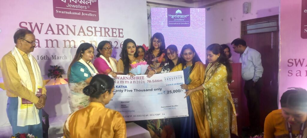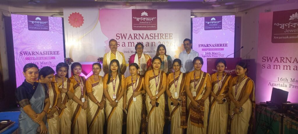 ডেস্ক রিপোর্টার আগরতলা।। স্বর্ণকমল জুয়েলার্স সফলভাবে আয়োজন করল স্বর্ণশ্রী সম্মান ২০২৬-র ৭ম সংস্করণ। অনুষ্ঠানে ত্রিপুরার ১১ জন বিশিষ্ট নারীকে তাঁদের নিজ নিজ ক্ষেত্রে অসাধারণ সাফল্য ও অনুপ্রেরণামূলক অবদানের জন্য সম্মানিত করা হয়। ১৬ মার্চ আগরতলা প্রেস ক্লাবে অনুষ্ঠিত হয় এবছরের স্বর্ণশ্রী সন্মান প্রদানের অনুষ্ঠান। স্বর্ণশ্রী সম্মান হল স্বর্ণকমল জুয়েলার্সের একটি বিশেষ উদ্যোগ, যার মাধ্যমে সেইসব নারীদের স্বীকৃতি দেওয়া হয় যাঁরা সমাজে অসাধারণ দৃঢ়তা, সাফল্য ও সেবার মাধ্যমে দৃষ্টান্ত স্থাপন করেছেন। রাজ্যের ১১ জন অনুপ্রেরণাদায়ী নারীর মাধ্যমে স্বর্ণকমল জুয়েলার্স ত্রিপুরাব প্রতিটি নারীর শক্তি, সাহস ও অবদানের প্রতি শ্রদ্ধা জ্ঞাপন করেছে এবং সমাজকে আরও প্রগতিশীল ও মানবিক করে তোলার ক্ষেত্রে নারী শক্তির গুরুত্বপূর্ন ভূমিকা স্বীকার করেছে।