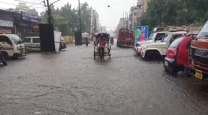 কয়েক ঘণ্টার বৃষ্টিতেই জল মগ্ন আগরতলা।মঙ্গলবার ভোর রাত থেকেই ক্ষণে ক্ষণে বৃষ্টি শুরু হয়েছে। এখনও আকাশ থেকে ঝাঁপিয়ে পড়ছে বৃষ্টি। এই অবস্থায় তিলোত্তমা আগরতলা থৈথৈ করছে জলে। শহরের জল নিকাশি ব্যবস্থা দুর্বল থাকার কারণেই অল্প বৃষ্টিতেই আগরতলা শহর চলে যায় জলের দখলে। তবে আগরতলা শহরে থাকা পাম্প মেশিন সক্রিয় ভাবে কাজ করছে বলে দাবী পুর নিগম কর্তৃপক্ষের।