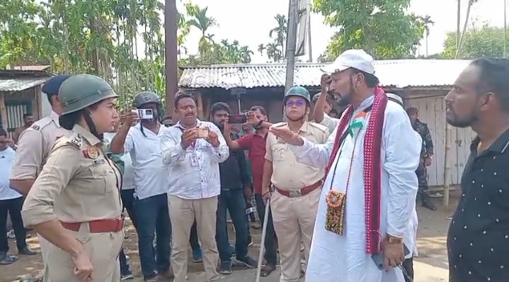।পুলিশের সঙ্গে তর্কে জড়িয়ে পড়েন কংগ্রেস নেতা বদরুজ্জামান।(ছবি – নিজস্ব)