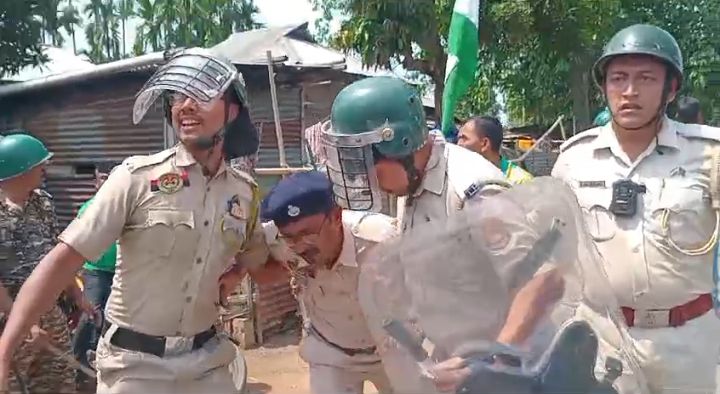 পুলিশের বক্তব্য, উত্তেজিত অন্দোলনকারীরা পুলিশকে লক্ষ্য করে ইট-পাটকেল ছুড়তে থাকে। পরিস্থিতি নিয়ন্ত্রণে পুলিশ পাল্টা মৃদু লাঠিচার্জ করে। এরপরও অন্দোলনকারীরা পিছু হটে নি।বরং তারা আরও আগ্রাসী মনোভাব নিয়ে পুলিশকে আক্রমণ করে।এরপর পুলিশ উত্তেজিত জনতাকে ছত্রভঙ্গ করতে জল কামানের ব্যবহার করে।শেষে বাধ্য হয় টিয়ার গ্যাসের সেল ছুঁড়তে।