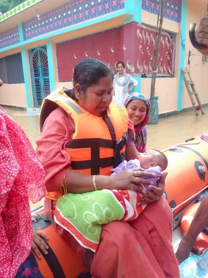 ।।বন্যা কবলিত অঞ্চলে শিশুকে কোলে নিয়ে উদ্ধার করেছেন নেত্রী।।