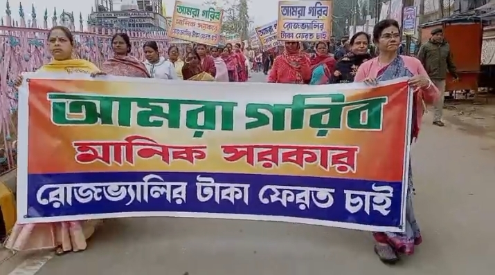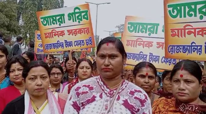 মানিক সরকার গো- ব্যাক,আমরা গরীব রোজভ্যালির টাকা ফেরত দাও।