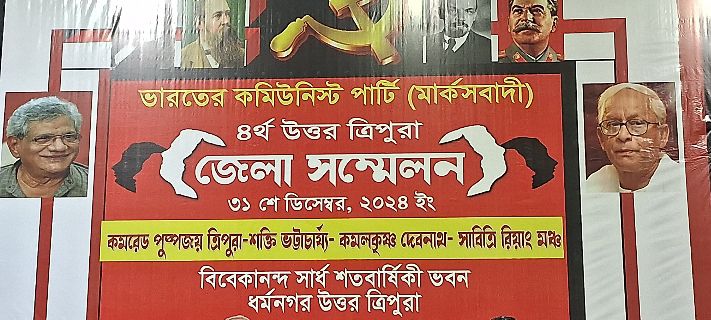 ধর্মনগর ডেস্ক,৩১ ডিসেম্বরে।। পূর্ব নির্ধারিত সূচি অনুযায়ী মঙ্গলবার ধর্মনগর বিবেকানন্দ সার্ধশতবার্ষিকী ভবনে ভারতীয় মার্কসবাদী কমিউনিস্ট পার্টির চতুর্থ জেলা সম্মেল অনুষ্ঠিত হয়।যদিও এ নিয়ে বিগত কয়েকদিন ধরে জেলা জুড়ে বিভিন্ন বিতর্কের সৃষ্টি হয়েছিল।সব বাধা-বিপত্তি কে উপেক্ষা করে এদিন সকালে দলীয় পতাকা উত্তোলনের মধ্যে দিয়ে শুরু হয় জেলা সন্মেলনে কাজ। সিপিআইএমের উত্তর জেলার সন্মেলনে প্রধান বক্তা হিসেবে উপস্থিত ছিলেন প্রাক্তন মুখ্যমন্ত্রী মানিক সরকার সহ সিপিআইএমের এক ঝাঁক রাজ্য নেতৃত্ব।