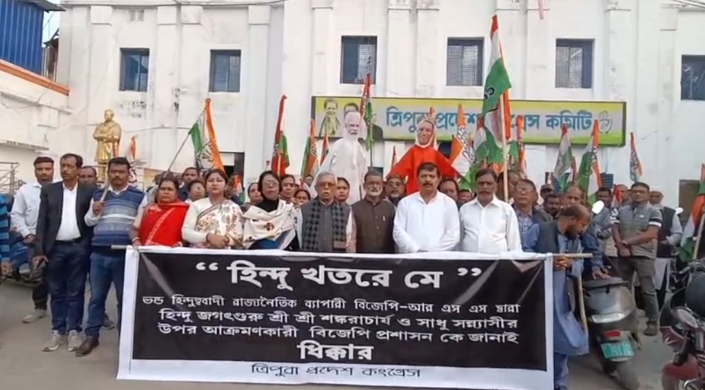 এই ঘটনার প্রতিবাদে দেশ জুড়ে সরব হয়েছে কংগ্রেস। রাজ্যেও রাস্তায় নেমেছে প্রদেশ কংগ্রেস নেতৃত্ব। কংগ্রেস রাজধানীতে প্রতিবাদ মিছিল করে।এবং প্রধানমন্ত্রী ও উত্তর প্রদেশের মুখ্যমন্ত্রী যোগী আদিত্য নাথের কুশ পুতুল দাহ করে। কংগ্রেস বিধায়ক সুদীপ রায় বর্মন, এই ঘটনার ধিক্কার জানিয়ে বলেন, ” বিজেপি ভন্ড। তারা নিজেদের হিন্দুদের রক্ষক বলে দাবি করলেও তাদের শরীরে  ঔরঙ্গজেবের রক্ত বইছে।