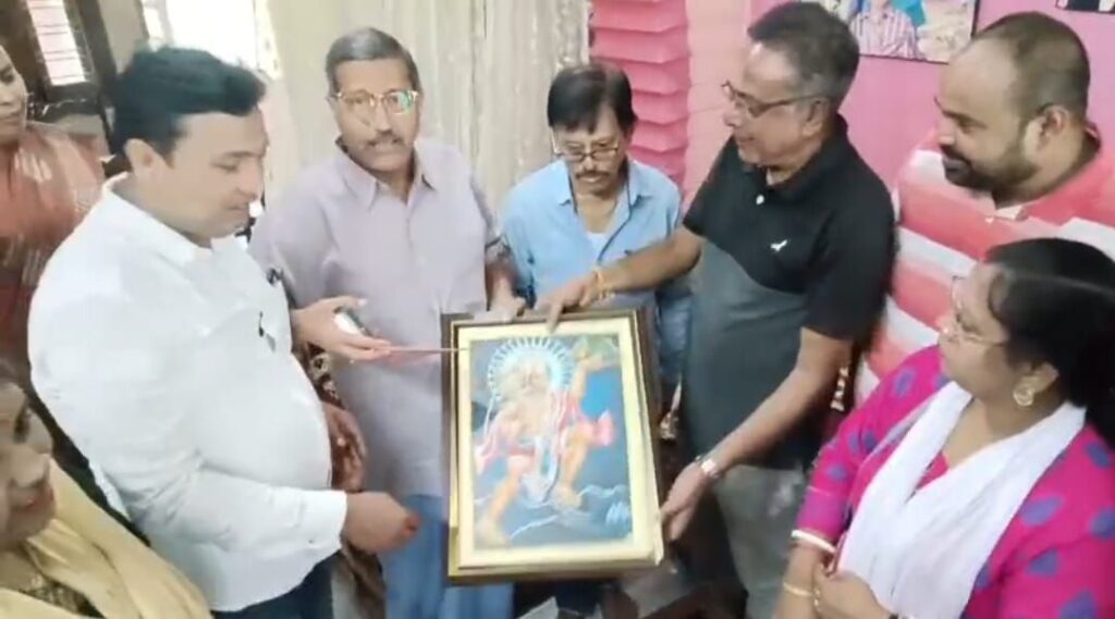মঙ্গলবার সকালে ৬- আগরতলা বিধানসভা কেন্দ্রের বিজেপির নেতারা হাজির হন প্রাক্তন সাংসদ শঙ্কর প্রসাদ দত্তের বাড়িতে।সেখানে তারা অভিনব কায়দায় শঙ্কর প্রসাদ দত্তের হাতে তুলে দিয়েছেন সঙ্কট মোচন হনুমানের ছবি এবং হনুমান চল্লিশা।