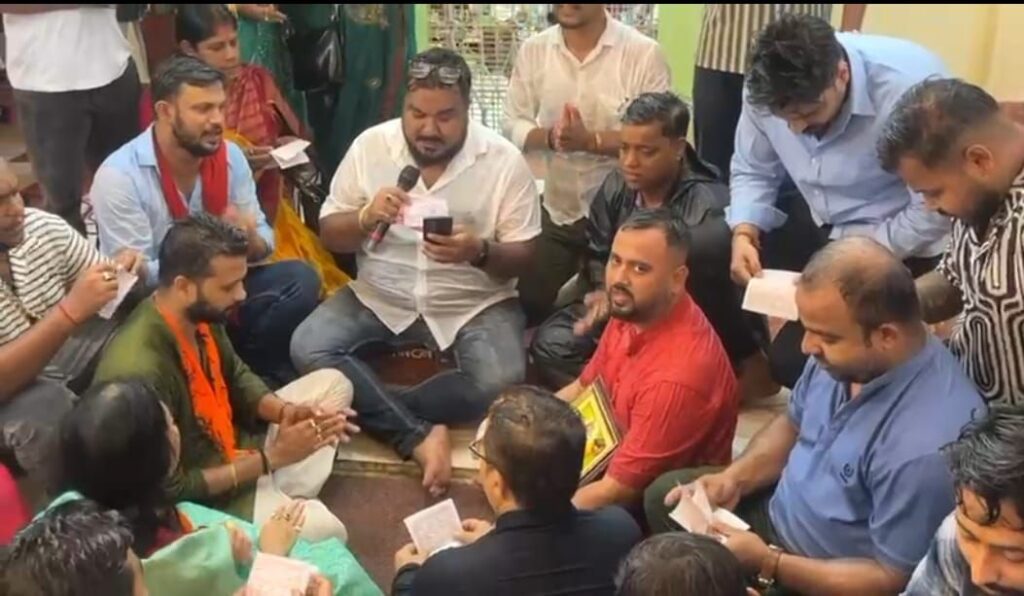 মেলারমাঠ কালী মন্দিরে হনুমান চল্লিশা পাঠের দৃশ্য।