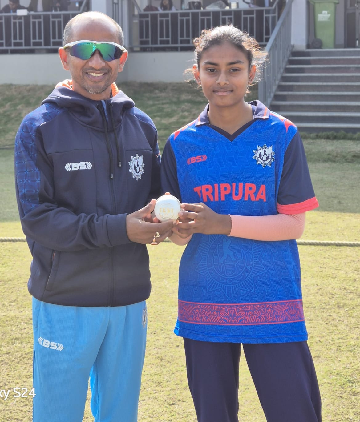 সিকিমের বিরুদ্ধে অপ্রত্যাশিত পরাজয়ের পরে ত্রিপুরার ক্রিকেটাররা কতটা তেঁতেছিল তার আভাস বৃহস্পতিবার পেল মেঘালয়। কার্যত হেলায় মেঘালয়কে পরাজিত করে ঘুরে দাঁড়ালো ত্রিপুরা। অনূর্ধ্ব ১৫ বালিকাদের এক দিবসীয় ক্রিকেটের প্লেট গ্রুপে। গুয়াহাটির ফুলুং এর এ সি এ ক্রিকেট একাডেমি মাঠে দাপটের সঙ্গে খেলে ত্রিপুরা জয় লাভ করে উইকেটে। মেঘালয়ের গড়া মাত্র ২৭ রানের জবাবে ত্রিপুরা ২৭ বল খেলে কোনও উইকেট না হারিয়ে জয়ের জন্য প্রয়োজনীয় রান তুলে নেয়। ত্রিপুরার ফুলেশ্বরী দেবনাথ পাঁচ উইকেট দখল করে। এদিন জয় পেয়ে কার্যতো ফাইনালে পৌঁছে গেল ত্রিপুরা। এ দিন সকালে টসে জয়লাভ করে প্রথম ব্যাট করতে নেমে ত্রিপুরার বোলারদের সাঁড়াশি আক্রমণের মুখে শুরু থেকেই ২২ গজে লুটিয়ে পড়ে মেঘালয়ের ব্যাটসম্যানরা। দল ১২.৫ ওভার ব্যাট করে মাত্র ২৭ রানে গুটিয়ে যায়। দল সর্বোচ্চ তের রান পায় অতিরিক্ত খাতে। ওই রান যদি না পেত তাহলে মেঘালয়ের স্কোর আরও লজ্জাজনক হত। দলের পক্ষে সর্বোচ্চ আট রান করে দলনায়িকা এল এম এল মাওলং। দলের সাতজন ব্যাটসম্যান কোনও রান করতে পারেনি। ত্রিপুরার পক্ষে ফুলেশ্বরী দেবনাথ ৮ রানে পাঁচটি, অঙ্কিতা পাটারি পাঁচ রানে তিনটি এবং পূর্বা চৌধুরী তিন রানে দুটি উইকেট দখল করে। জবাবে খেলতে নেমে ত্রিপুরা ২৭ বল খেলে কোনও উইকেট না হারিয়ে জয়ের জন্য প্রয়োজনীয় রান তুলে নেয়। রাজ্য দলের পক্ষে অস্মিতা রায় ১৬ বল খেলে চারটি বাউন্ডারির সাহায্যে ২১ রানে এবং অনুষ্কা শীল ১২ বল খেলে একটি বাউন্ডারির সাহায্যে পাঁচ রানে অপরাজিত থেকে যায়। আসরে চার ম্যাচ খেলে তিনটি ম্যাচে জয়লাভ করলো ত্রিপুরা। ১০ জানুয়ারি ত্রিপুরার পঞ্চম প্রথম পক্ষ অরুণাচল প্রদেশ।